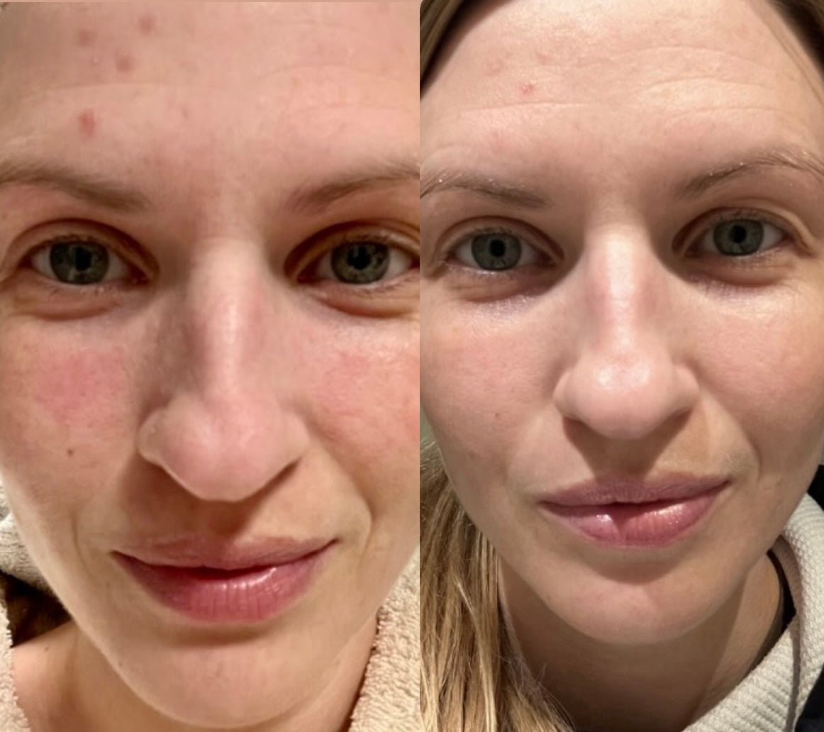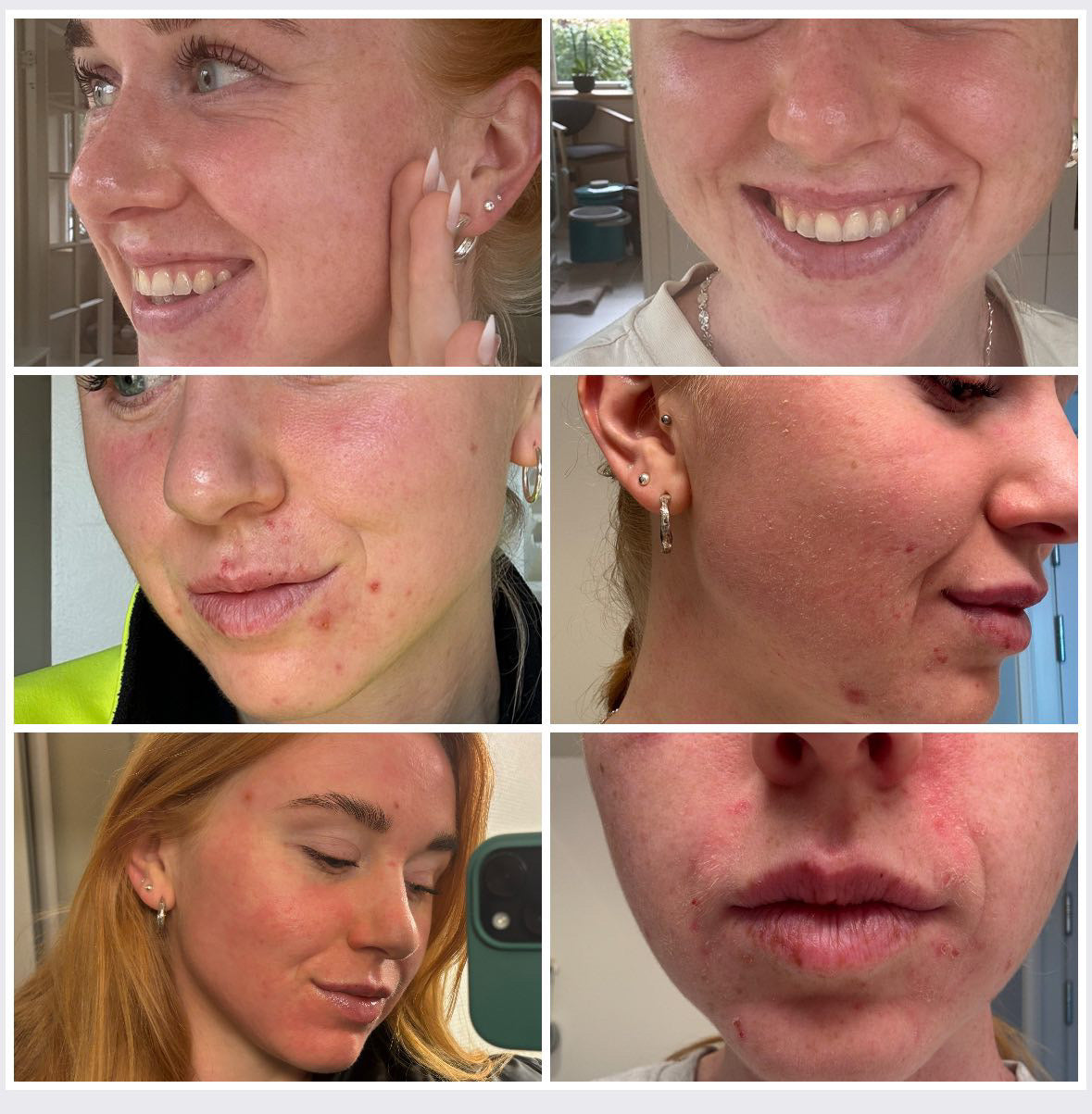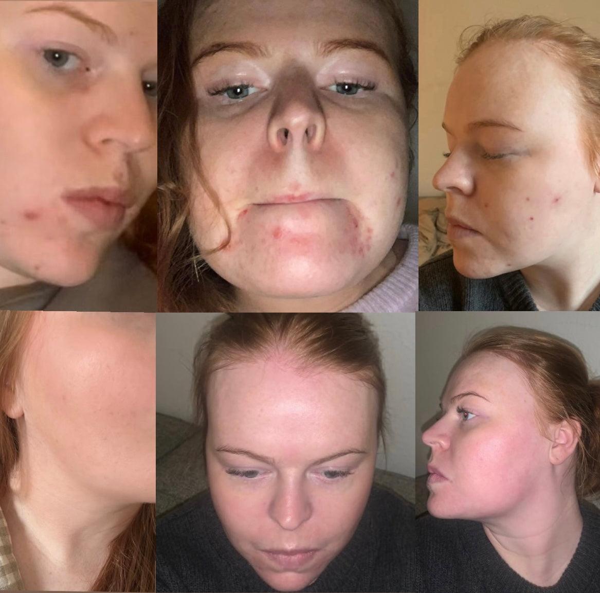 Nu har jeg prøvet olien af og er stadig rigtig glad for den! Jeg har i mange år været rigtigt udfordret med mange urenheder så med olien og dine råd om kost er min hud blevet så meget bedre!! Har også haft noget udslæt som den har hjulpet på. Her er et par før og efter billeder. <3