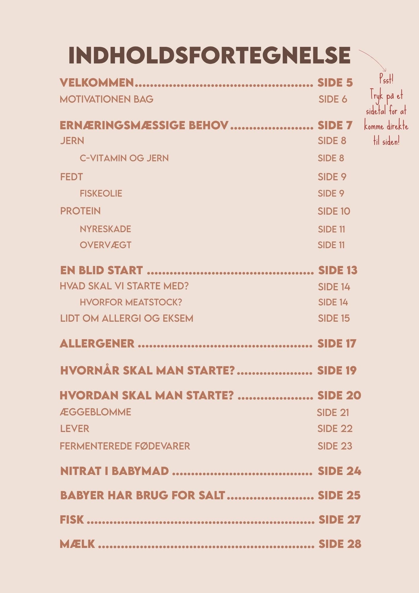 Denne PDF er på 75 sider fyldt med viden om ernæring, babymad og opskrifter.